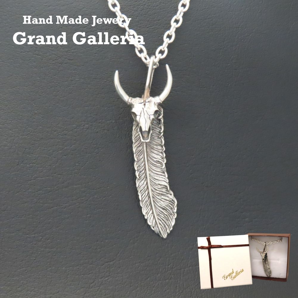 バッファロースカルフェザーネックレス シルバー925 【刻印無料】 バッファロー スカル ネックレス・・・