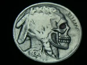 1936 ホーボー ニッケル バッファロー ニッケル - ハンドメイド インディアン スカル