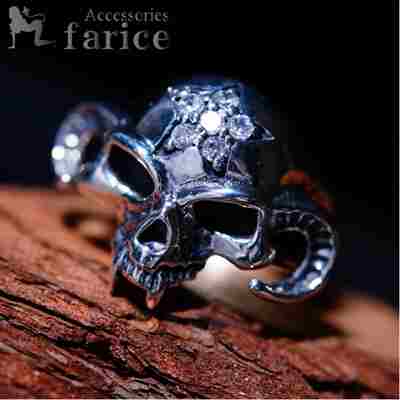 クリスタルクリアキュービックジルコニアスター デビルバッファロースカルシルバーリング【15号】