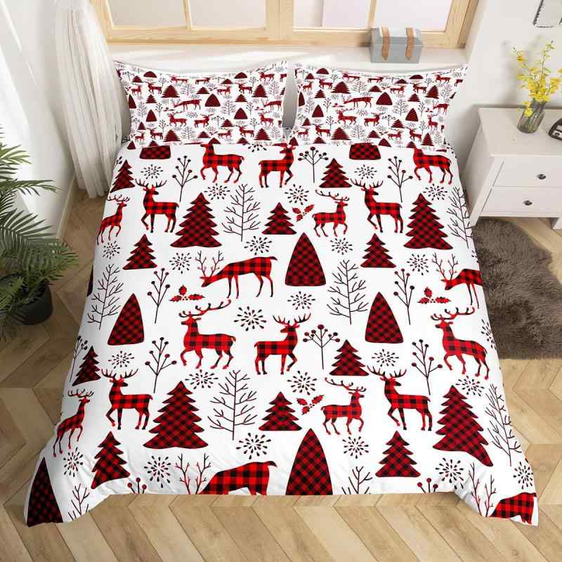 寝具セット キッズ クリスマス トナカイ 植物 花 バッファローチェック柄 布団カバー 3点セット ・・・