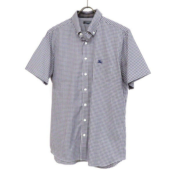 【美品】BURBERRY バーバリー ボタンダウンシャツ 半袖 ギンガムチェック柄 ロゴ刺繍 コット・・・