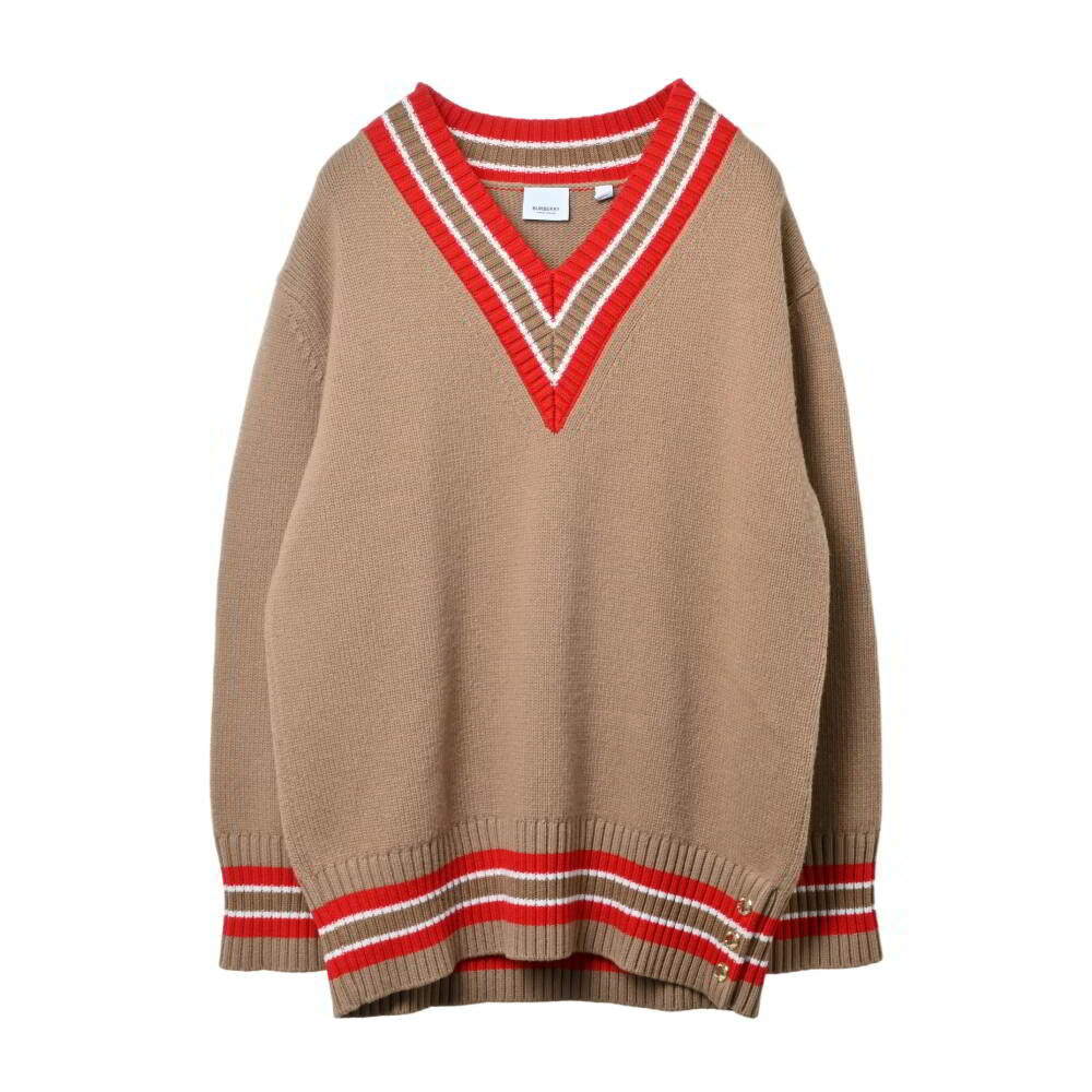 Burberry 8036071 ラムウール Vネック ニット M ブラウン バーバリー 【中古】