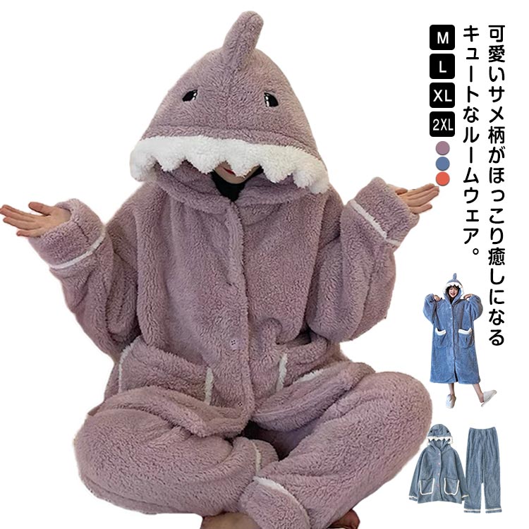 サメ もこもこ着ぐるみ 着る毛布 レディース メンズ お揃い かわいい フード付き 前開き あったか・・・