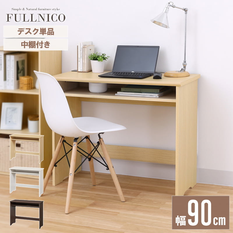 パソコンデスク コスパ最強 90cm幅 机 シンプル 棚付き デスク PCデスク ワークデスク 作業・・・