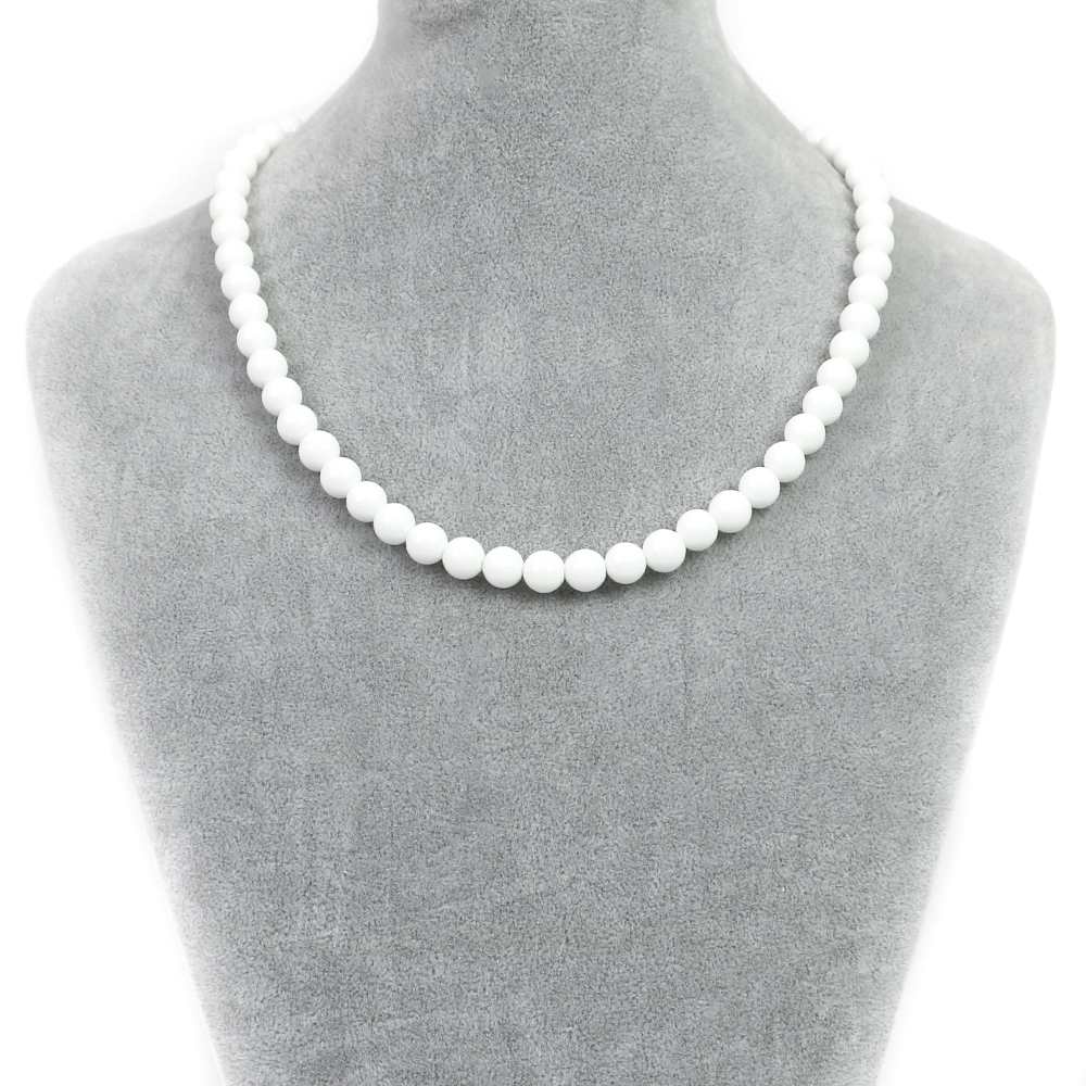 シンプルストーンネックレスホワイトオニキス(人工石)【丸玉】8mm【天然石ビーズパワーストーン】