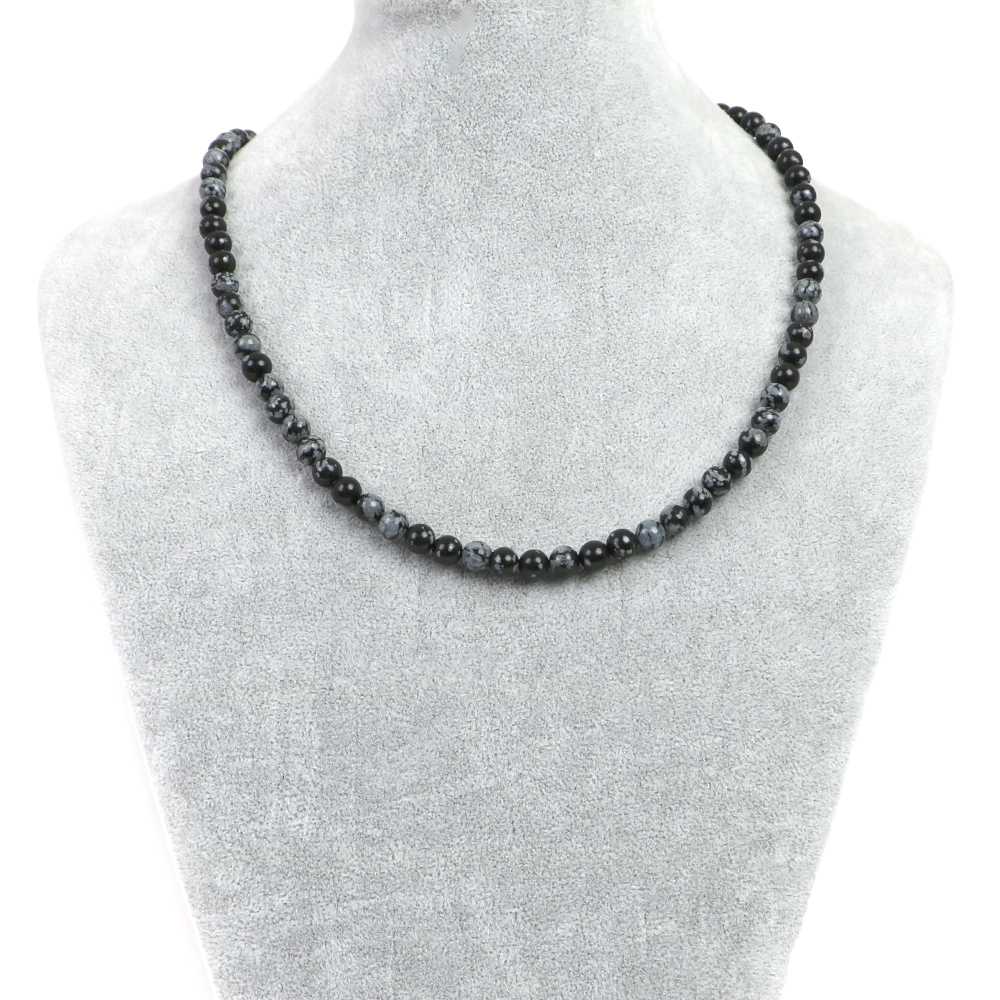 シンプルストーンネックレススノーフレークオブジディアン【丸玉】6mm【天然石ビーズパワーストーン】