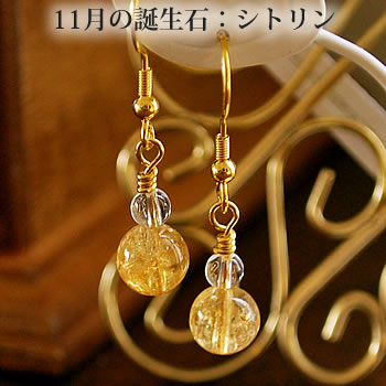 シトリン 誕生石ピアス/イヤリング 11月 天然石 パワーストーン シトリン 天然石ピアス/イヤリン・・・