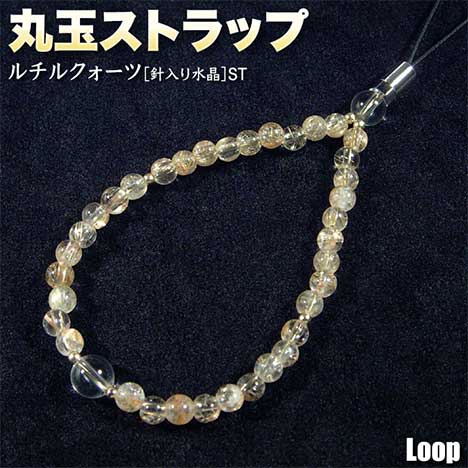 《金運アップ》ルチルクォーツ[針入り水晶]・丸玉ストラップ◆ループ◆(携帯ストラップ/スマートフォン・・・