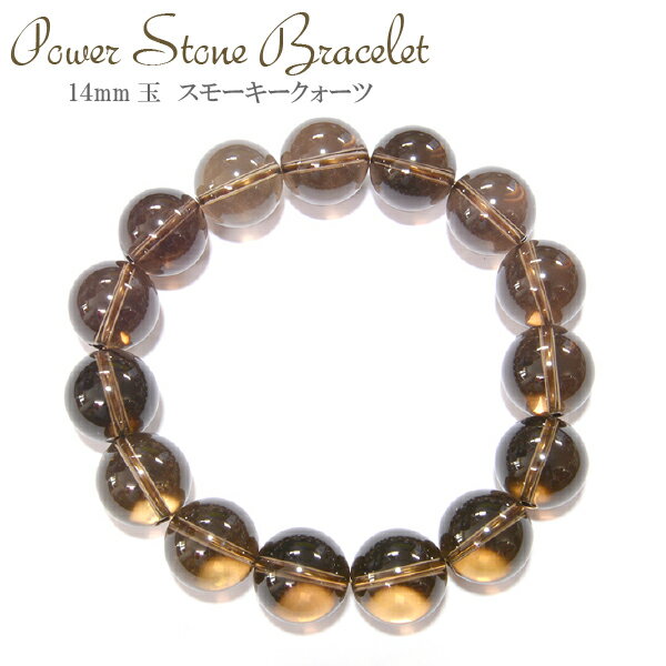 【メール便 送料無料】スモーキークォーツ 14mm玉 【煙水晶14ミリ天然石数珠ブレスレット 15個・・・