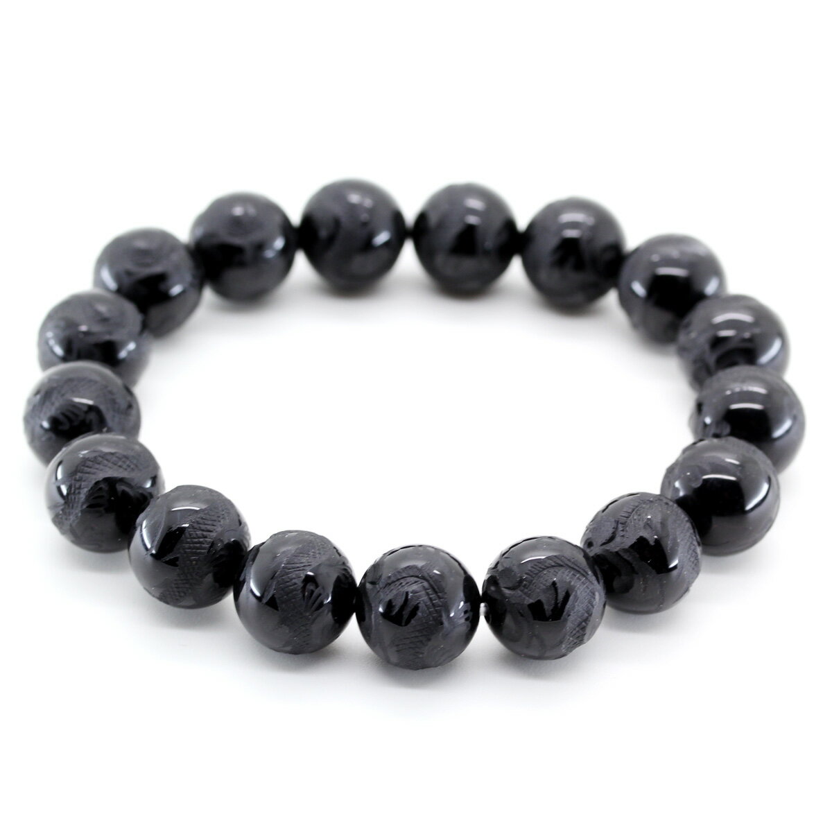 天然石 素彫り 皇帝龍 オニキス 12mm 数珠 ブレスレット パワーストーン 天然石 メンズ