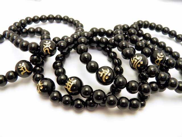 梵字入り 梵字 オニキス 金彫り 数珠 ブレスレット 風水 パワーストーン