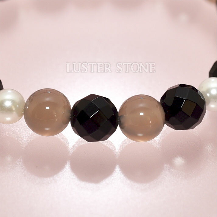 LUSTERSTONE オリジナルデザインブレスレット オニキス64面カット グレーメノウ シェルパ・・・