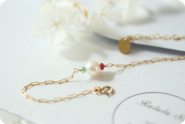 ガーネットとパール のブレスレット 1月誕生石 重ね付けにも!オリジナル 14KGF ゴールドフィル・・・