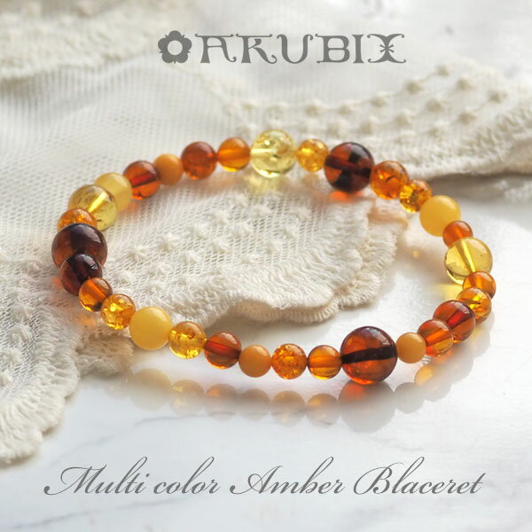 【バルト海の琥珀】サイズオーダー マルチカラーブレスレット【送料無料】【ポーチ付】【3ツ星】【j96・・・