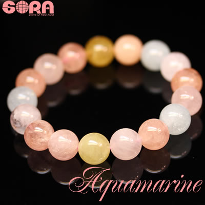 【限定1点モノ】Cuteなカラフルパステル★AAAAAカラフルアクアマリン 12mm 一連ブレスレッ・・・