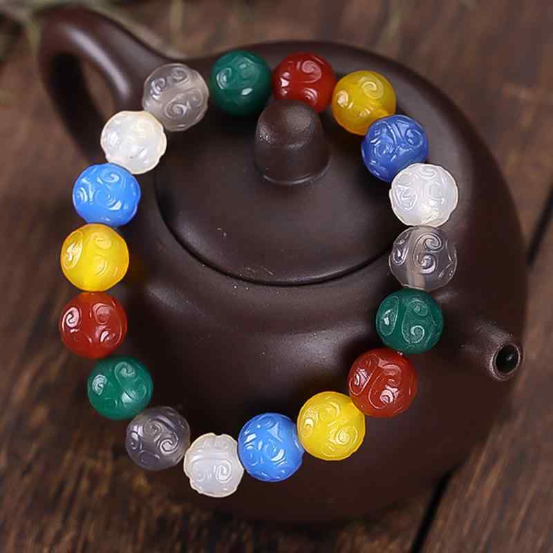 ブレスレット メンズ 男性用 メノウ 天珠 龍紋 カラフルビーズ 黒青玉 筒型 樽型 天然石 パワー・・・