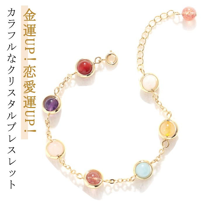 送料無料 カラフル ブレスレット クリスタルブレスレット 誕生日 七色 チェーン レディース パワー・・・
