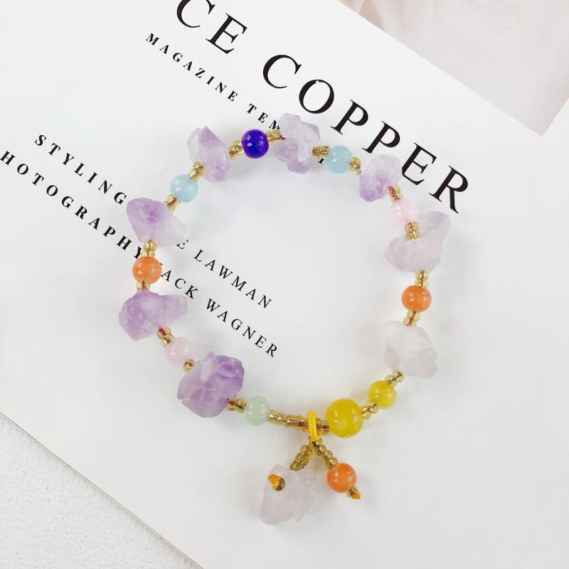 ブレスレット レディース 天然石アメジスト パワーストーン 原石 カラフル トレンド 個性的デザイン・・・