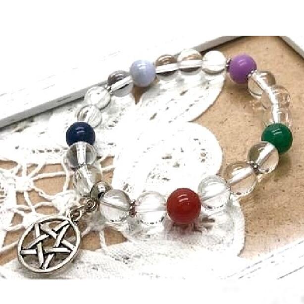 パワーストーン ブレスレット 天然石 五芒星 カラフル ハンドメイド アクセサリー プレゼント 女性・・・