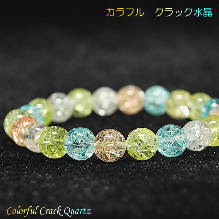 カラフルクラック水晶8mm 天然石 ブレスレット パワーストーン 【幸運】【願望成就】 カラフル ク・・・