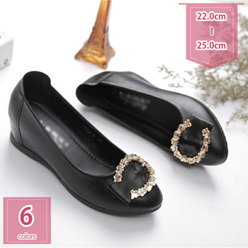 500円OFFクーポン ウェッジソール パンプス インヒール アーモンドトゥ 履き心地良い 皮靴 レ・・・