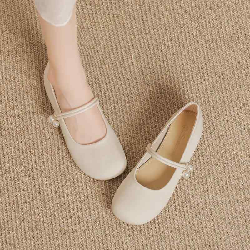 メリージェーン パンプス チャイナ風 マイクロファイバーレザー ラウンドトゥ ローヒール ストラップ・・・