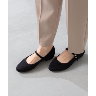 メヌエ Menue 3素材 ストラップ ローヒール パンプス (ブラック/スエード調)
