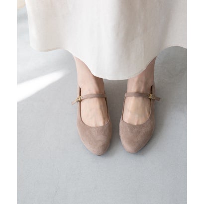 メヌエ Menue 3素材 ストラップ ローヒール パンプス (アッシュグレー/スエード調)