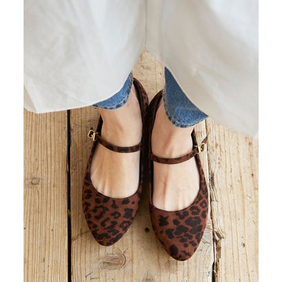 メヌエ Menue 3素材 ストラップ ローヒール パンプス (レオパード/スエード調)
