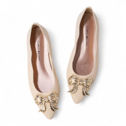 クムウ_ダイアナ CUMUU_DIANA 【撥水加工】リボンモチーフ ニットシューズ (アイボリー生・・・