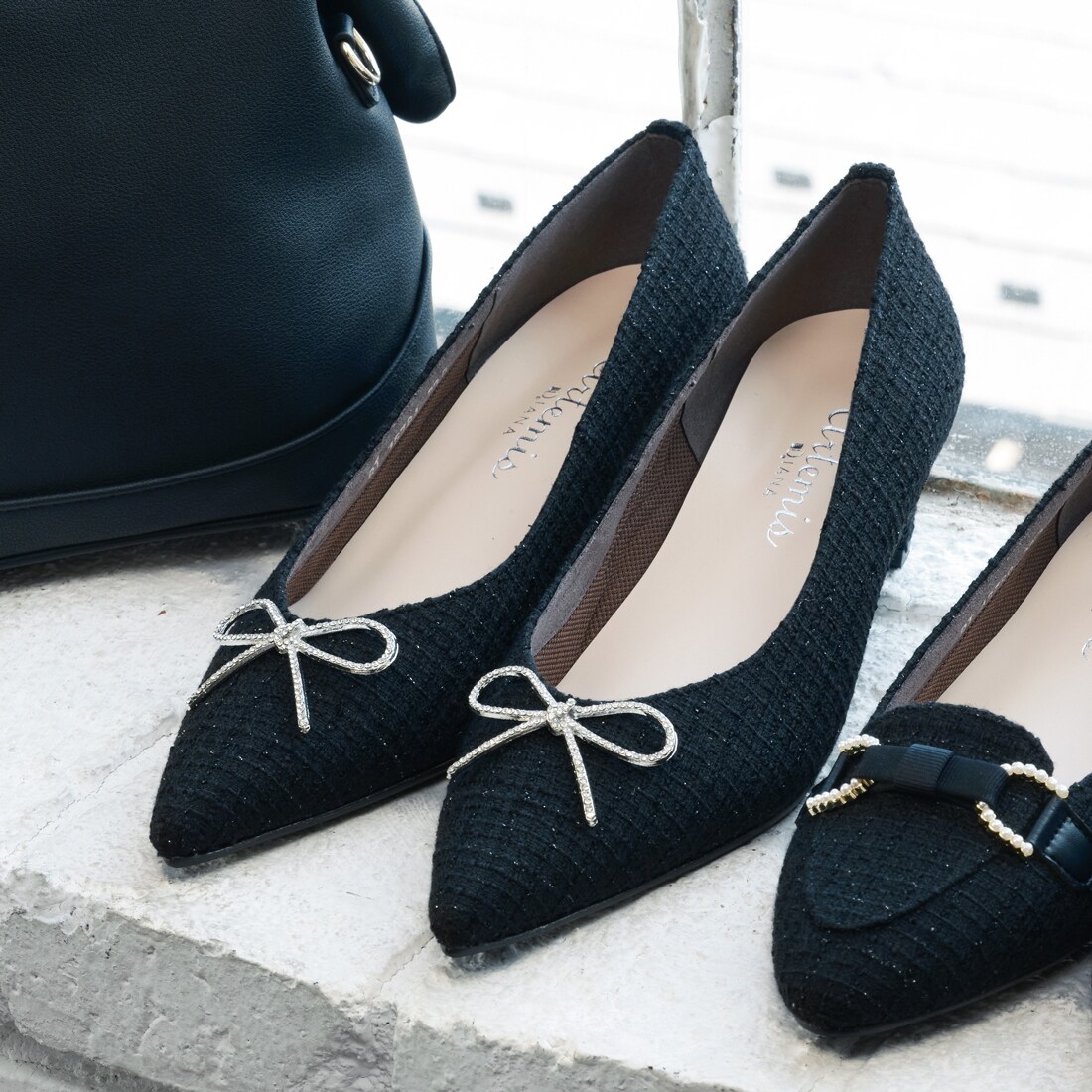 【25秋冬新作】ラインストーンリボン ツイードパンプス/アルテミス by ダイアナ(artemis ・・・