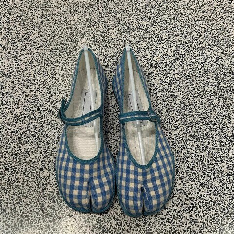 ◇ ⊂ merry jenny メリージェニー ギンガムチェック柄 シアー フラットパンプス サイズ・・・