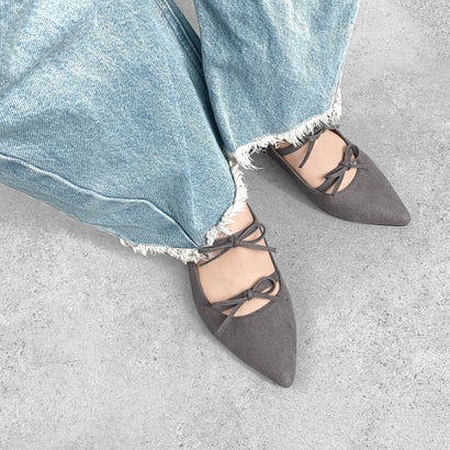マミアン mamian ポインテッドトゥダブルリボンフラットシューズ/m17040 (チャコールS)