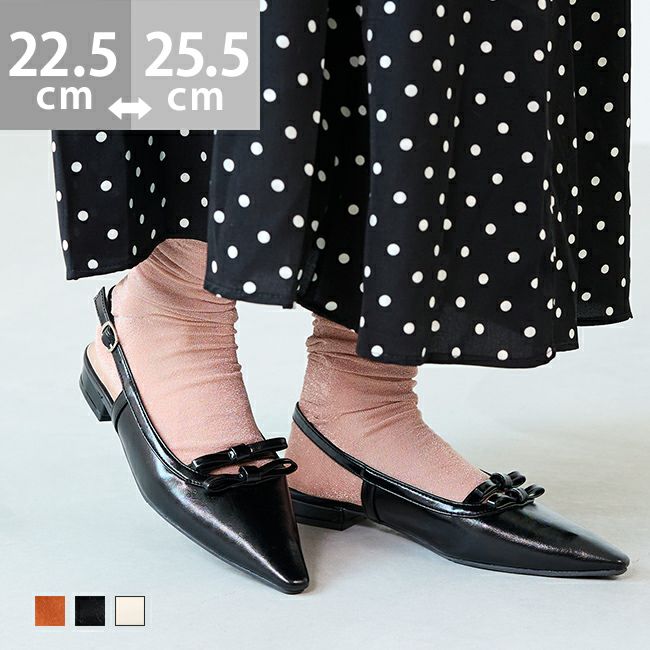 25春夏新作 ポインテッドトゥ リボン バックストラップパンプス/メヌエ(menue)