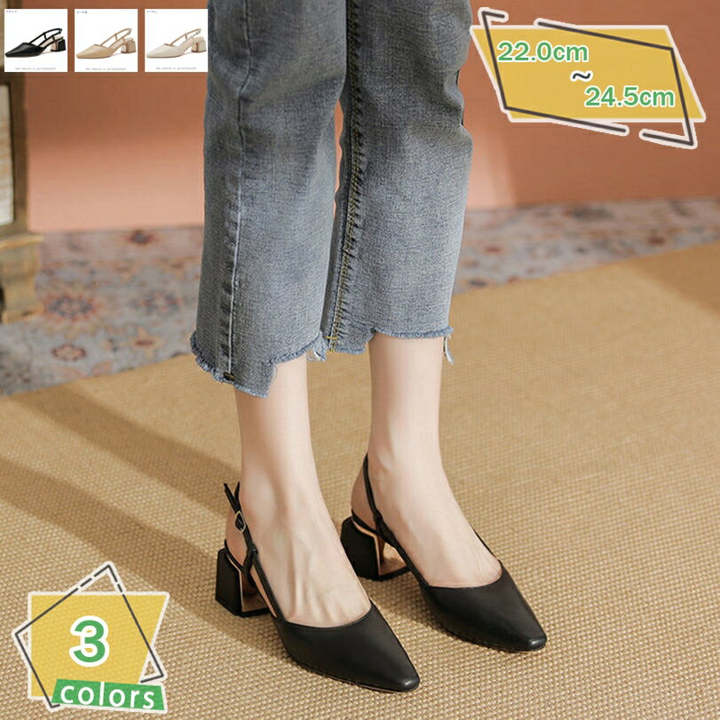 バックバンド パンプス 走れる 痛くない レディース 太ヒール バックストラップ 歩きやすい チャン・・・