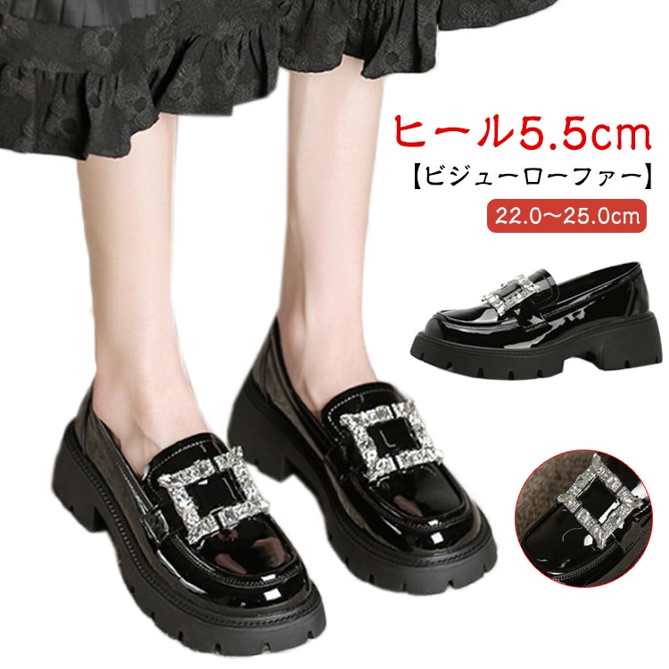 ローファー ビジュー 冬 大人カジュアル シューズ 厚底 ビジュー レディース 30代 10代 ビジ・・・
