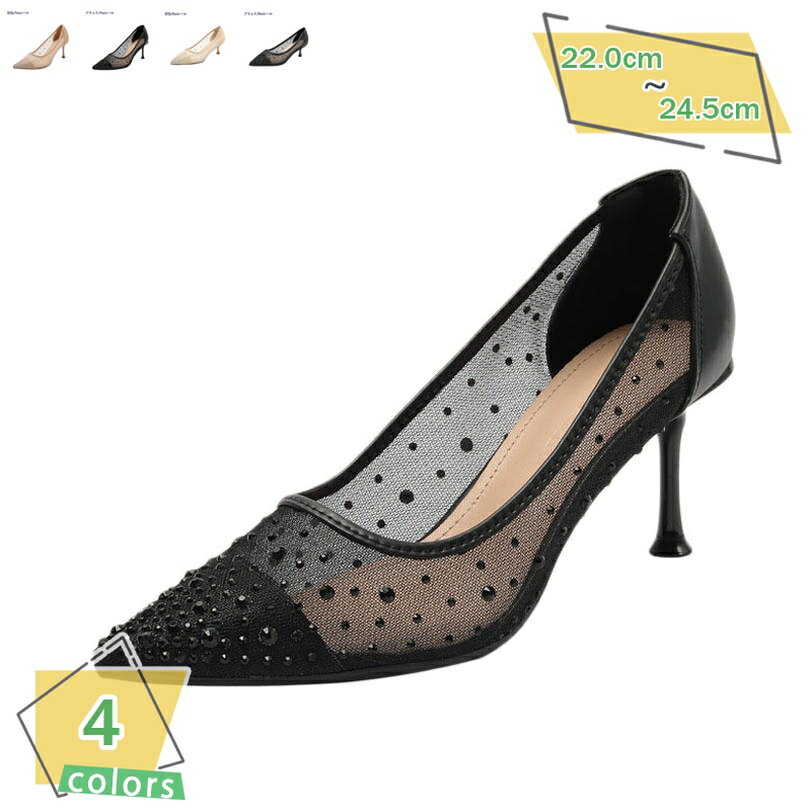 777円OFFクーポン パンプス 痛くない 結婚式 パンプス ポインテッドトゥ ビジュー ヒール9c・・・
