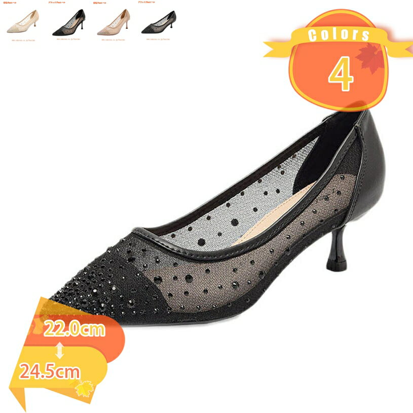 1000円OFFクーポン ピンヒール パンプス ビジュー パンプス ポインテッドトゥ 6cmヒール ・・・