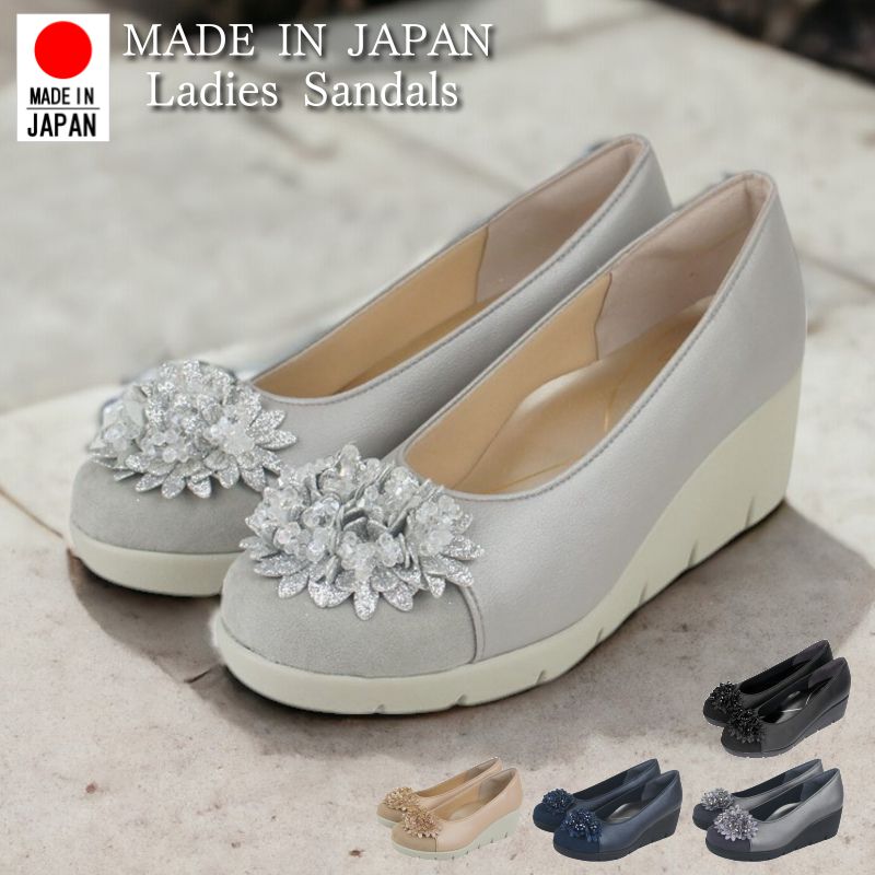 パンプス レディース 痛くない 歩きやすい ヒール 黒 靴 ウエッジ ソール ビジュー飾り 美脚 厚・・・