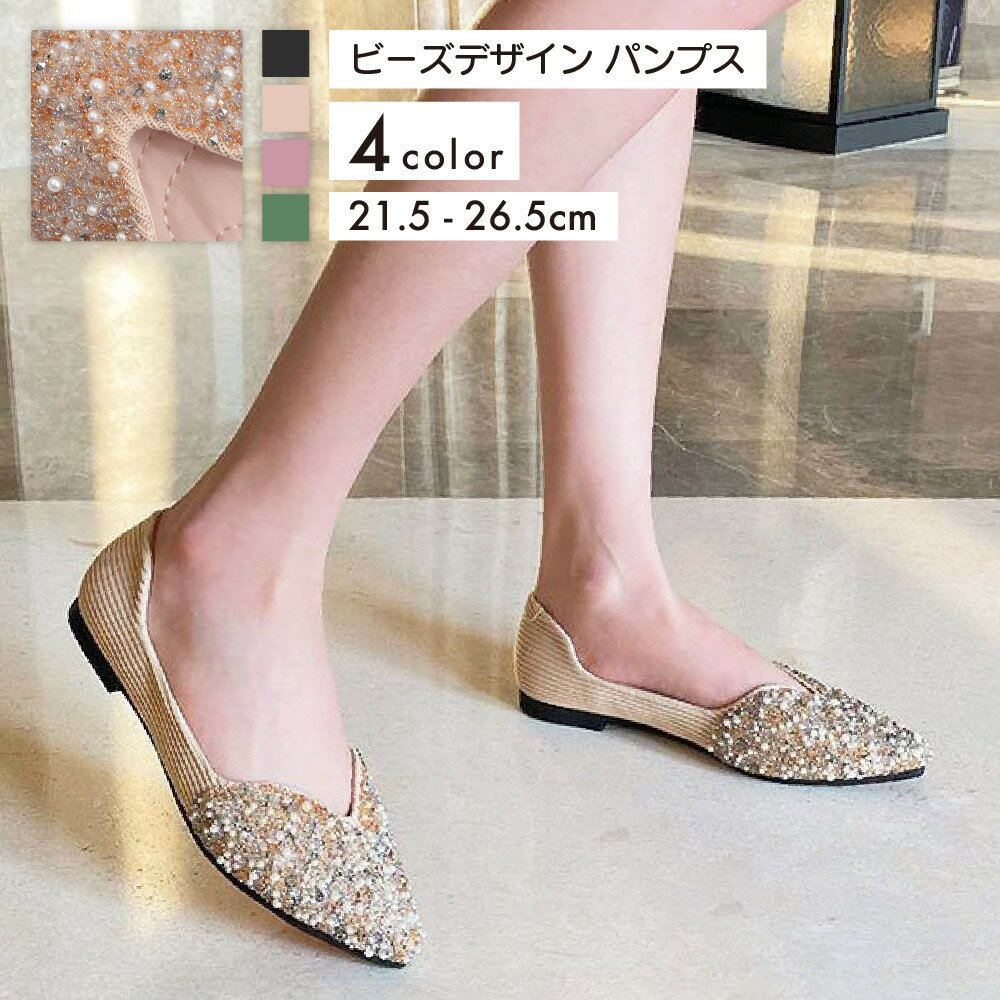 送料無料 パンプス ポインテッドトゥ フラットシューズ ぺたんこ レディース 女性用 靴 くつ ビー・・・