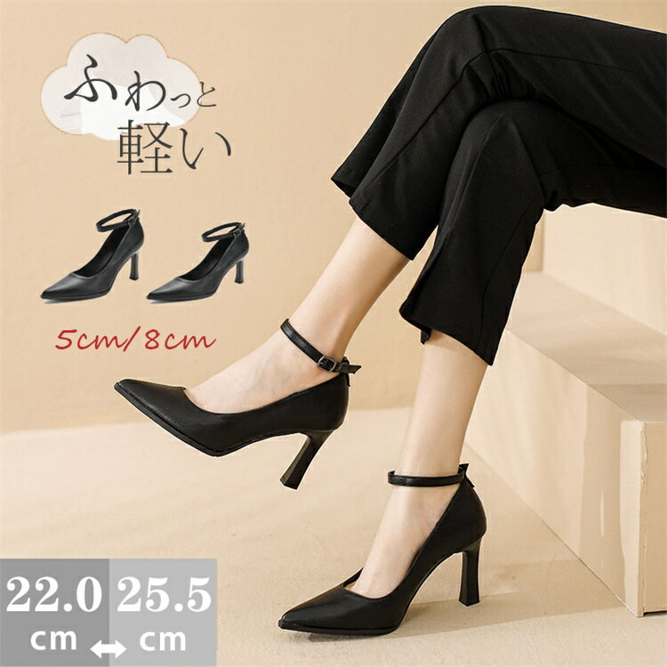 パンプス ストラップ 7センチヒール ポインテッド パンプス 痛くない ピンヒール ハイヒール 履き・・・