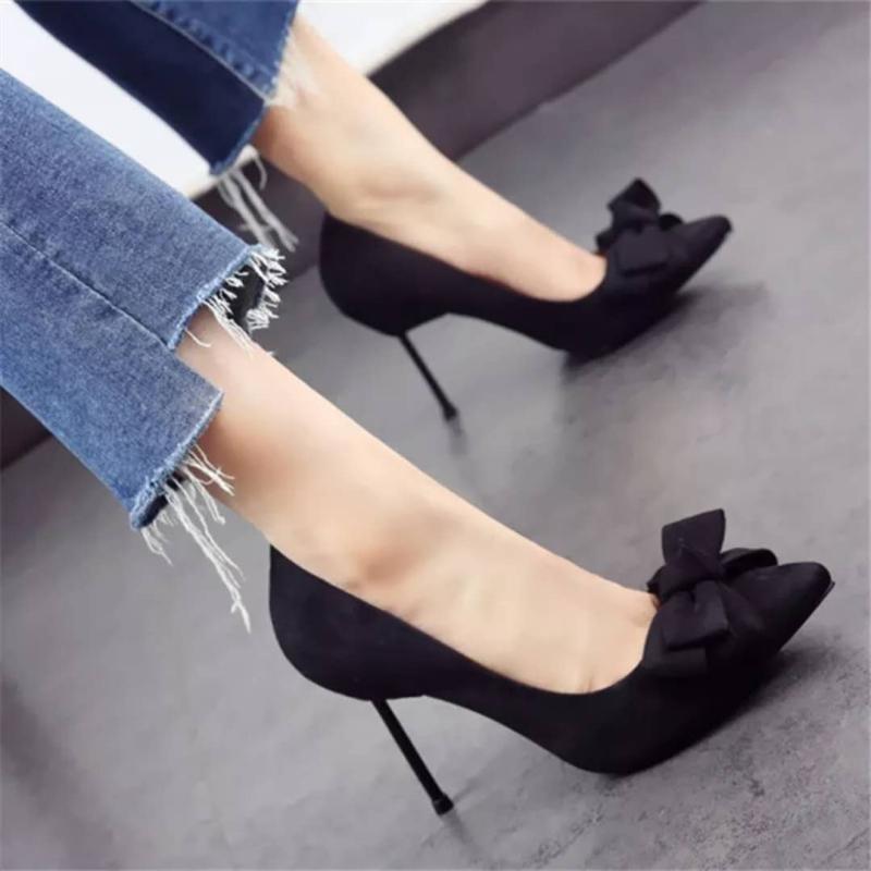 パンプス レディース ポインテッドトゥ ハイヒール ピンヒール フリンジ カットアウト スエード 無・・・