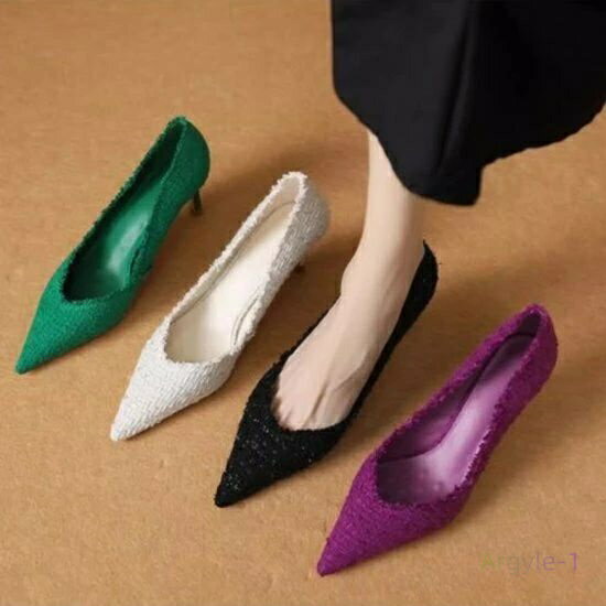 パンプス レディース ツイード調 ポインテッドトゥ ハイヒール 6cmヒール ピンヒール ダメージ ・・・