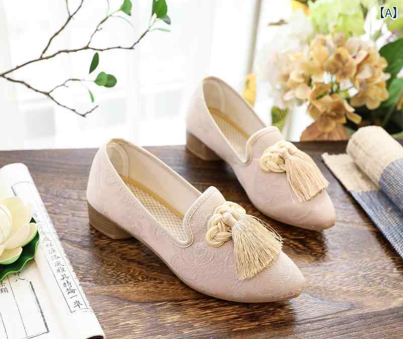 パンプス レディース シューズ ポインテッドトゥ 刺繍 綿布アッパー ハンドメイド チャイナボタン ・・・