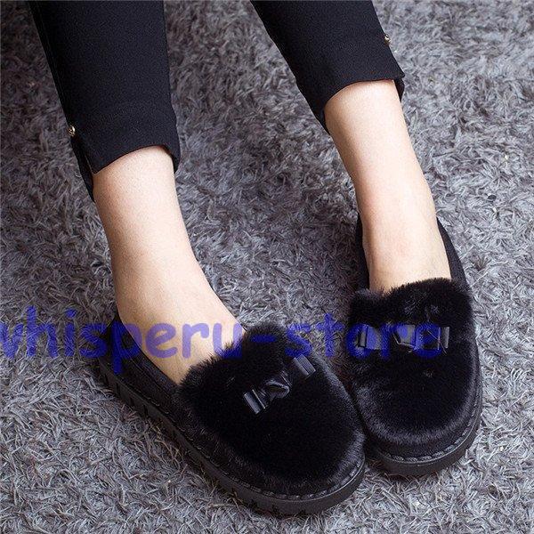 モカシン ファーパンプス レディース 秋冬 ファー 裏起毛 裏ボア フラットシューズ モカシンシュー・・・