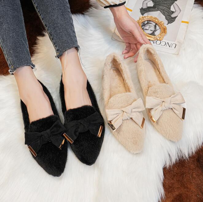 パンプス 痛くない オフィス ボア もこもこ ローヒール ぺたんこ バレエシューズ リボン付き フラ・・・