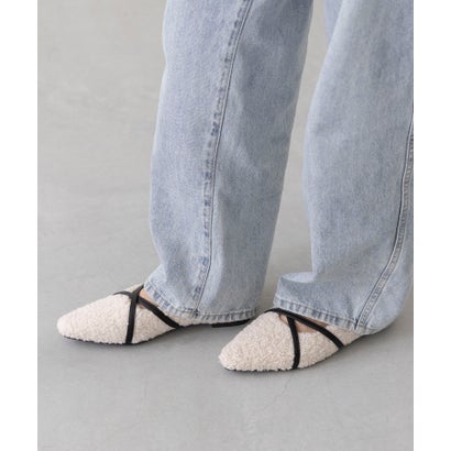 メヌエ Menue クロスストラップ ローヒール ボアパンプス (4001アイボリーボア)