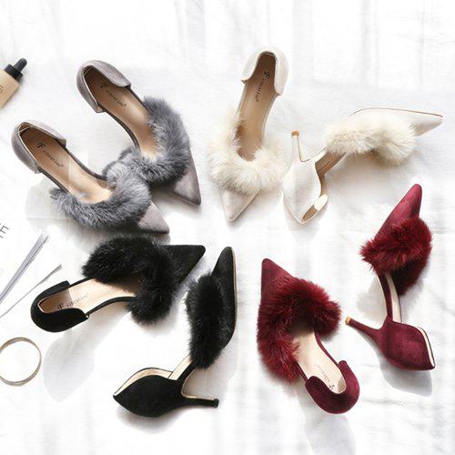【取寄】ファーパンプス ファー セパレート ボアシューズ ファーシューズ ピンヒール ハイヒール ポ・・・