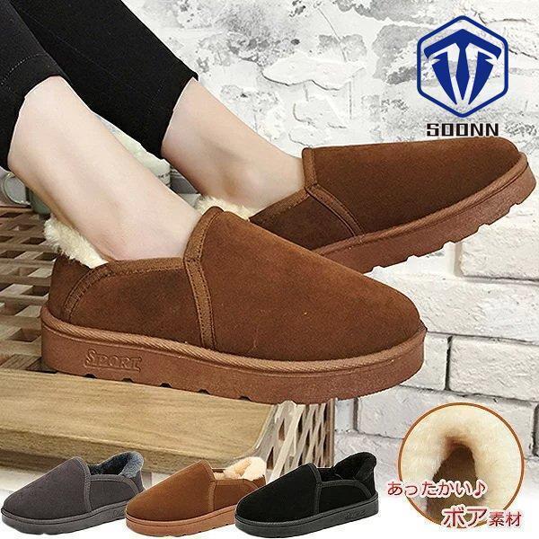ファーパンプス レディースシューズ 歩きやすい 裏起毛 モカシン エコボアパンプス ぺたんこ スリッ・・・