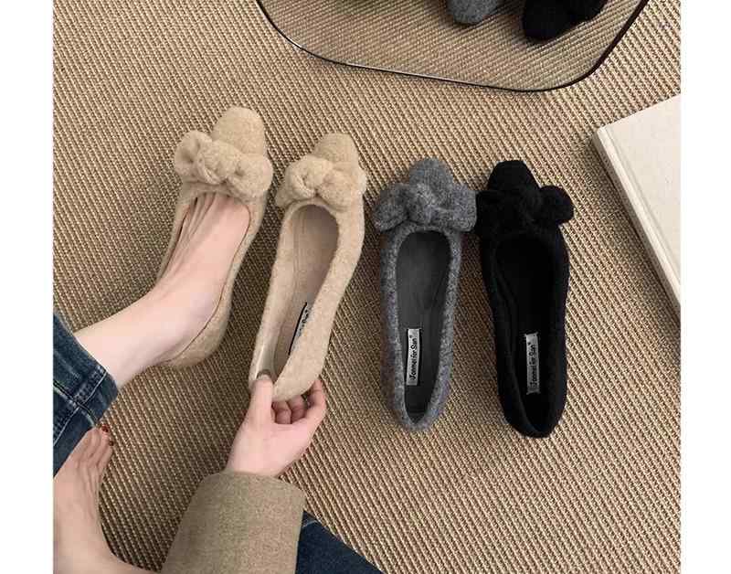 もこもこ パンプス 可愛い ボア シューズ 韓国系 リボン ウール風 裏起毛 あたたかい 秋 冬 レ・・・